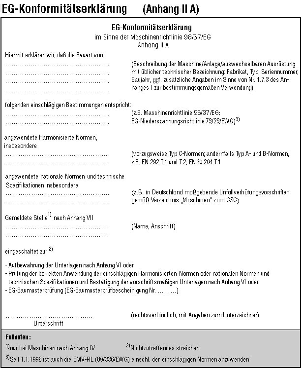 Erstellen von EG Konformitätserklärungen: